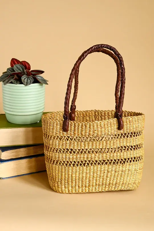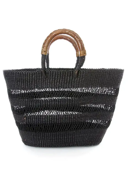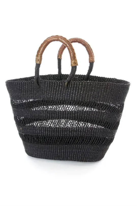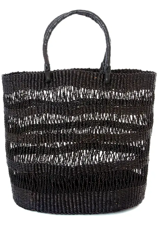 Experience the exceptional craftsmanship of Bolga baskets, skillfully handwoven by artisans in the Bolgatanga region of Ghana. Constructed from robust elephant grass, these highly regarded storage baskets and shopping totes deliver unmatched functionality and sustainability for the discerning shopper. With their striking colors and unique designs, Bolga baskets are the perfect choice for errands, picnics, and elevating your home decor. Embrace the perfect blend of tradition and practicality with these durable pieces that are built to last for years.