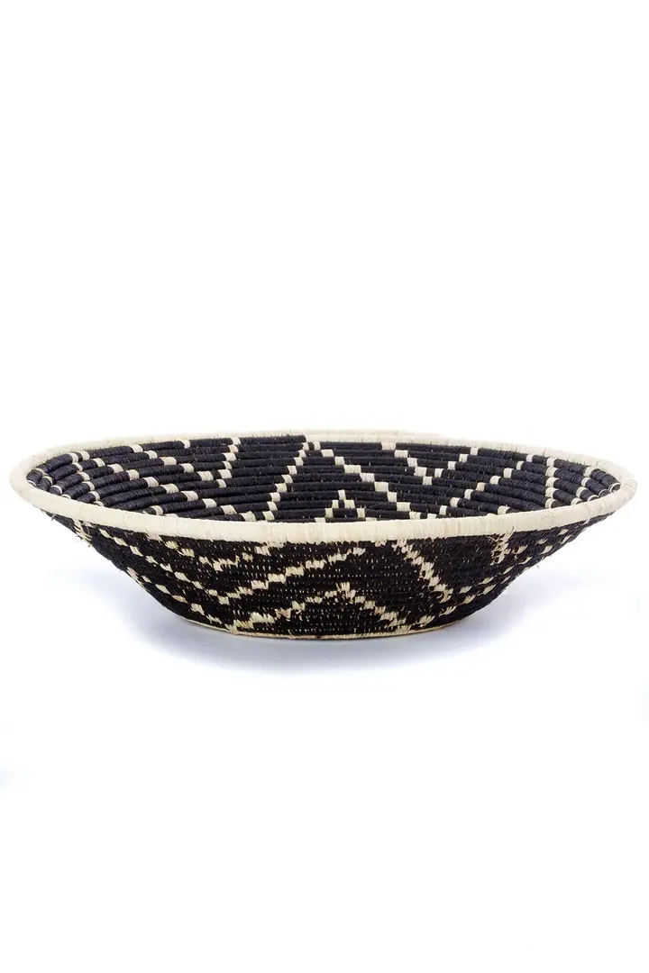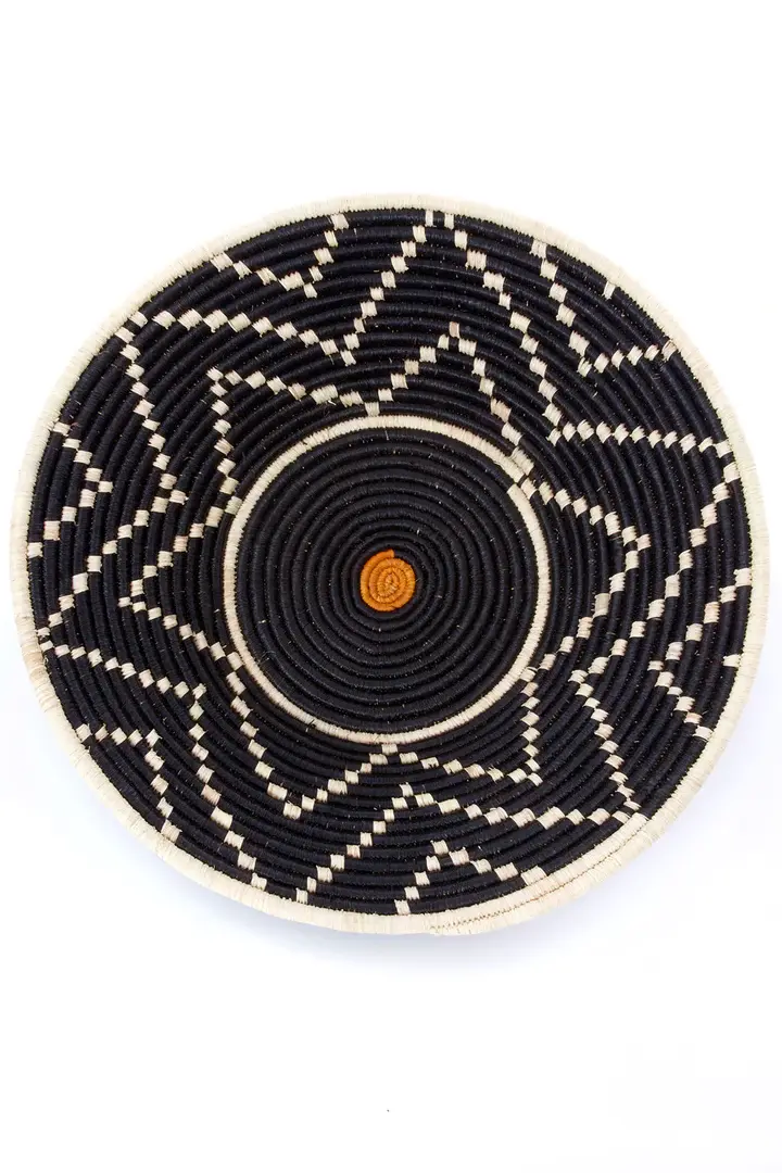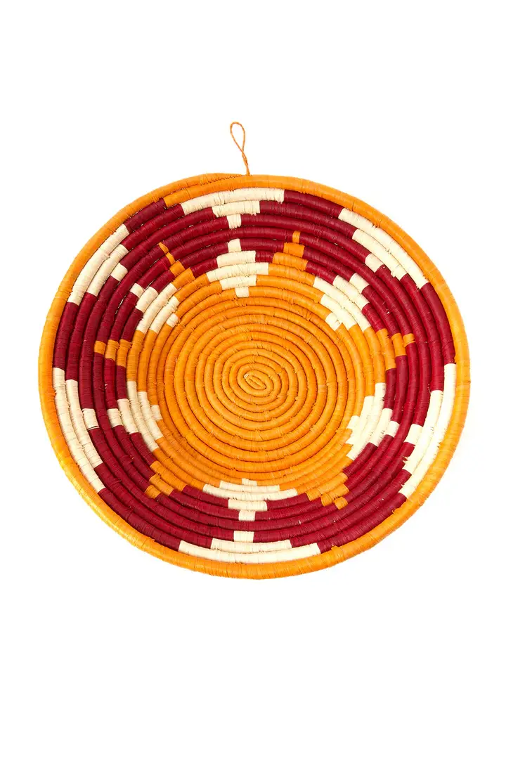 Skilled artisans in Uganda meticulously handcraft decorative baskets from dyed strips of raffia palm and plant stalks. Suitable for both wall display and tabletop use, each handmade basket exemplifies exceptional craftsmanship and adds an elegant accent to any environment. By choosing these unique creations, you also support local artisans and their craftsmanship.